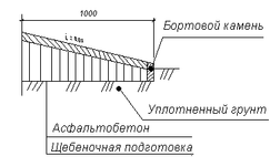 Обратная засыпка траншеи ведется с послойным трамбованием каждого слоя. Отмостка устраивается по периметру здания с уклоном, от стены на 1 метр. Уклон отмостки 2%. Конструктивное решение отмостки: утрамбованный грунт, щебеночная подготовка создающая соответствующий уклон отмостки и асфальтобетон. По периметру отмостки устраивается бортовой камень см. рисунок 3.