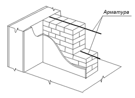 В проектируемом здании приняты перегородки из кирпича марки КРП- 75 на цементно-песчаном растворе марки М-25. Кладка перегородок осуществляется по двурядной системе перевязки швов с заложением арматуры диаметром 10 мм см. рисунок 5. Для повышения жесткости примыкания к несущим стенам. Арматура закладывается в швы через 6 рядов кладки. Толщина вертикальных швов составляет 10 мм, горизонтальных 12 мм.