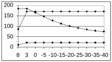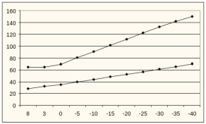 | tн | + 8 | + 3 | 0 | – 5 | – 10 | – 15 | – 20 | – 25 | – 30 | – 35 | – 40 |