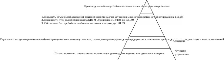 Дерево целей представляет собой структурную модель, показывающую соподчиненность и связь целей подразделений в иерархии управления. Для его построения миссия предприятия (отопительная котельная) делится на проектные цели его подразделений, операционные цели исполнителей, составленные по принципу SMART.