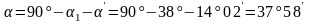 для β = 90 – 37о58` = 55о02`; sin β = 0,788.