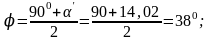 где φ=(900+14002`)/2; sin φ = 0,788; cos φ = 0,616.