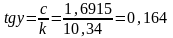 Угол наклона осевой линии ригеля к горизонтали у = 9º30' из соотношения