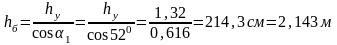 где y1 = Н - а = 5,25 – 1,688 =3,562 м.