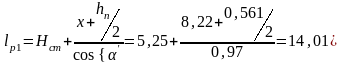 lр = lст + lриг = 4,422 + 10,878 = 15,3 м,