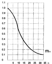 Рис. 3.5 - График зависимости коэффициента mα от угла наклона волокон α.