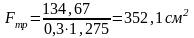 Fрасч = Fбр = 18,5∙19,2 – 18,5∙(1,6+2) =355,2 см2;
