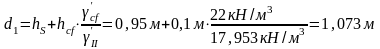 d2=h1+0,5 – в расчете не учитывается, так как фундамент закладывается в грунте, обладающем несущей способностью.