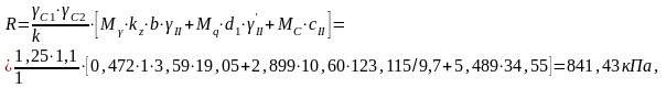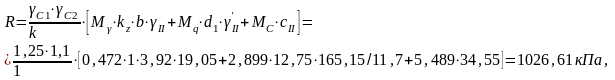 По полученной в пункте 3.2 величине b и глубине заложения d1, определяем расчетное сопротивление грунта основания R, кПа: