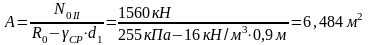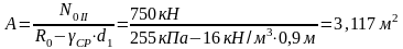 где N0II – рассчетная нагрузка, приложенная к обрезу фундамента, кН; R0 – расчетное сопротивление грунта основания, кПа;