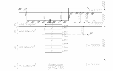 | 35 | Глинис-тый грунт | 19,1 | 27,2 | 0,18 | 30 | 18 | 25 | 21 | 19000 |