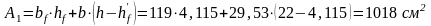 - нейтральная ось проходит в полке, следовательно, сечение рассматривается как прямоугольное шириной