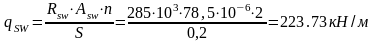 – усилие в хомутах на единицу длины элемента, кН/м.