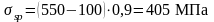 Так как минимальные потери напряжений 100 МПа, то в формулу
