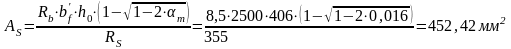 На опоре балка армируется двумя сетками. Растянутая полка в расчете не учитывается, рассматривается прямоугольное сечение
