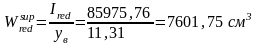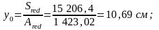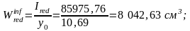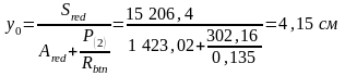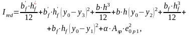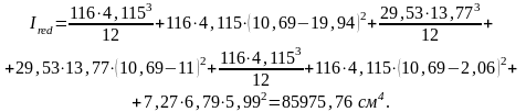 Момент инерции приведенного сечения относительно его центра тяжести вычислим по формуле: