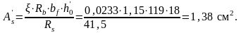 Находим требуемую площадь арматуры в верхней зоне по формуле: