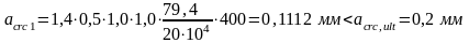 Полную ширину раскрытия трещин (при непродолжительном раскрытии) рассчитываем по формуле: