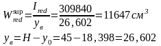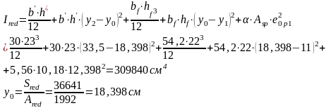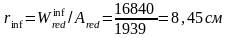 – расстояние от центра тяжести напрягаемой арматуры до центра тяжести приведённого сечения,
