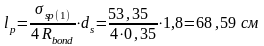 Расстояние от торца панели до начала зоны передачи напряжений: