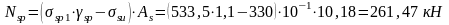 = 533,5 МПа – предварительное напряжение с учетом первых потерь;
