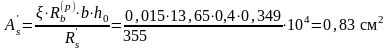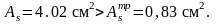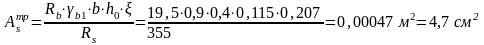 Рассчитывается требуемое количество арматуры в верхней зоне: