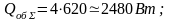 Qот =37028,281 – 4200 = 32828,281 Вт