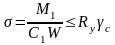 Требуемый момент сопротивления поперечного сечения балки, определенной по прочности, равен: при упругой работе:
