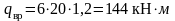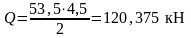 Поперечная сила, действующая в опорном сечении со стороны консоли: