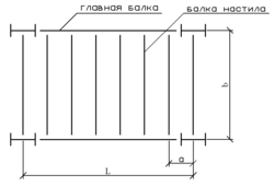 При железобетонном настиле шаг балок настила – назначается 1,5–3 м, шаг вспомогательных балок назначается – 3-5 м.