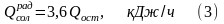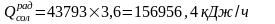 Теперь можем найти количество тепла, поступающее в помещение от солнечной радиации по формуле (3)