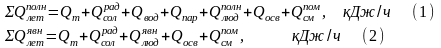 Баланс по полным и явным теплопоступлениям в зимний период года производится по следующим формулам: