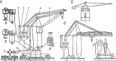 Поворотный оголовок (рис. 5.23, в) устанавливается на подпятнике и роликах. Поворотная башня (рис. 5.23, г) устанавливается на поворотной платформе.