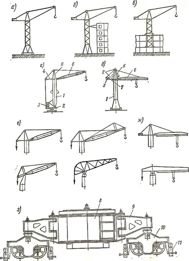 Рис. 5.23. Кинематические схемы башенных кранов: