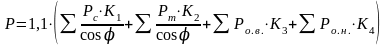 где 1,1 — коэффициент, учитывающий потери мощности в сети;