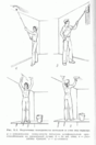 Ручной краскопульт обслуживают двое рабочих: маляр, который окрашивает поверхность, и подсобный рабочий, который наблюдает за давлением красочного состава в аппарате и поддерживает его, подкачивая состав ручным насосом. При работе удочкой с форсункой следует направлять конусообразную струю красочной пыли (красочный факел) по возможности перпендикулярно к окрашенной поверхности, что является одним из основных условий ее равномерного покрытия. Красочный факел внутри полый, поэтому для получения равномерного слоя краски надо передвигать удочку вдоль окрашиваемой поверхности, одновременно делая плавные круговые движения, при этом необходимо следить, чтобы не было пропусков или двойных проходов по одному и тому же месту (рис 2.6.5.).