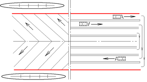 Схема работы бульдозера при B>40 м