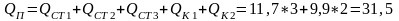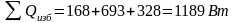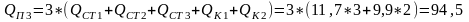 Qобщ.= 1,5х27+1,3х54=40,5+70,2=110,7 м3/ч