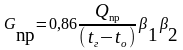 | № стояка , № помещения | Теплопотери помещения QП, Вт | Теплоотдача отдельных труб Q тр, Вт | Теплоотдача прибора Q пр, Вт | Коэффициент β1 | Коэффициент β2 | Температура воздуха в помещении tВ, °С | Температура воды на входе в прибор tВх, °С | Температура воды на выходе из прибора tВых, °С | Температурный напор, t, °С | Расход воды через прибор Gпр, кг/ч | Коэффициент n | Коэффициент p | Коэффициент c | Коэффициент φ | Коэффициент b | Коэффициент φк | Требуемый номинальный тепловой поток Qнп, Вт | Коэффициент β3 | Коэффициент β4 | Условный номинальный тепловой поток Qну, Вт | Число приборов | Марка приборов |