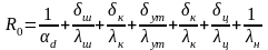 Суммарное сопротивление наружной стены R0, м2*0С/Вт, определяется как сумма термических сопротивлений слоёв и сопротивлений теплоотдаче внутренней Rв и наружной Rн поверхностей по формуле: