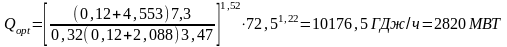 Плотность тепло потребления q =72,5 ГДж/(ч га).