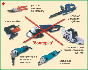 Использовать – «болгарку», в качестве отрезного устройства категорически запрещено, т.к. в этом случаи нарушается целостность оцинкованного покрытия, а искры, попадающие на поверхность полимерного покрытия, вызывают коррозию металла. Если вы хотите уберечь себя от этих негативных последствий, используйте в качестве инструмента шлицевые ножницы по металлу JS 1660, JS 1670 или высечные ножницы JN 1601.
