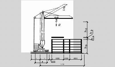 (ширина рельсовой колей башенного крана – d=6 м; радиус окружности, описываемый хвостовой частью крана, «задний габарит» – r=4 м)