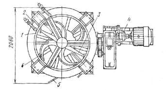 Рис. 23. Глинорастиратель СМ-859: 1 — корпус, 2 — рама, 3 — ворошитель. 4 — привод, 5—скребок, 6 — крыльчатки