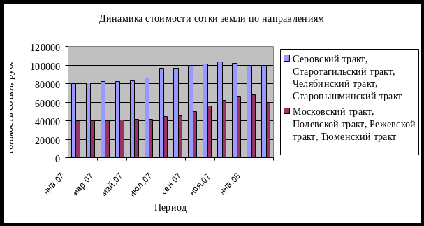 Рис. 1.8 Динамика стоимости сотки земли по направлениям.