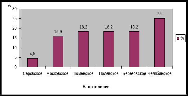 Рис. 1.9 Распределение екатеринбургских коттеджных поселков по направлениям, %.