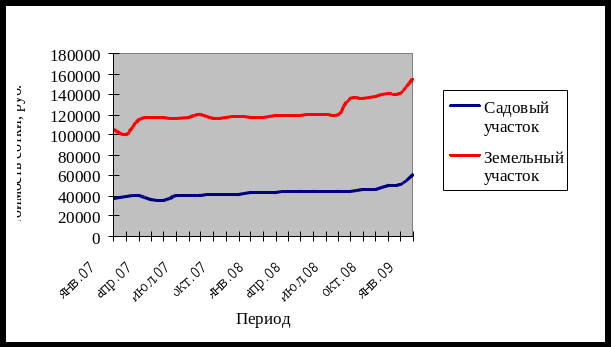 Рис. 1.5 Динамика стоимости одной сотки земельных и садовых участков.