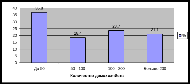 Рис. 1.10 Распределение коттеджных поселков по количеству домохозяйств.