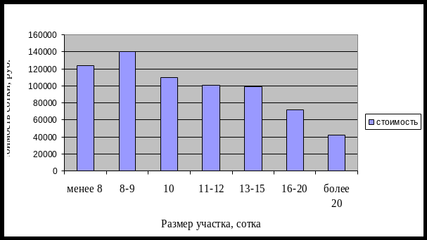 Рис. 1.6 Стоимость одной сотки земли в зависимости от размера участка.