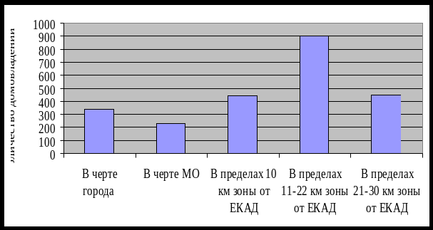 Рис. 1.3 Количество домовладений в организованных коттеджных поселках г. Екатеринбурга.